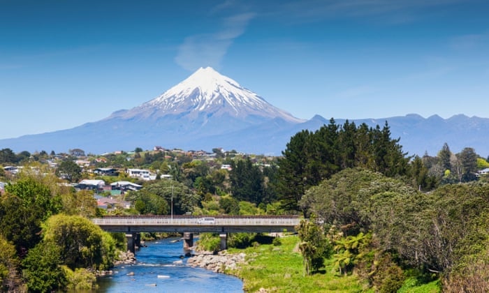 The photo below is not ours.  The overcast skies and low clouds blocked our view of Mt Taranaki.   We really wanted to hike some of it's highly-rated trails despite the disappointing weather.  So we got a few supplies and headed that way.